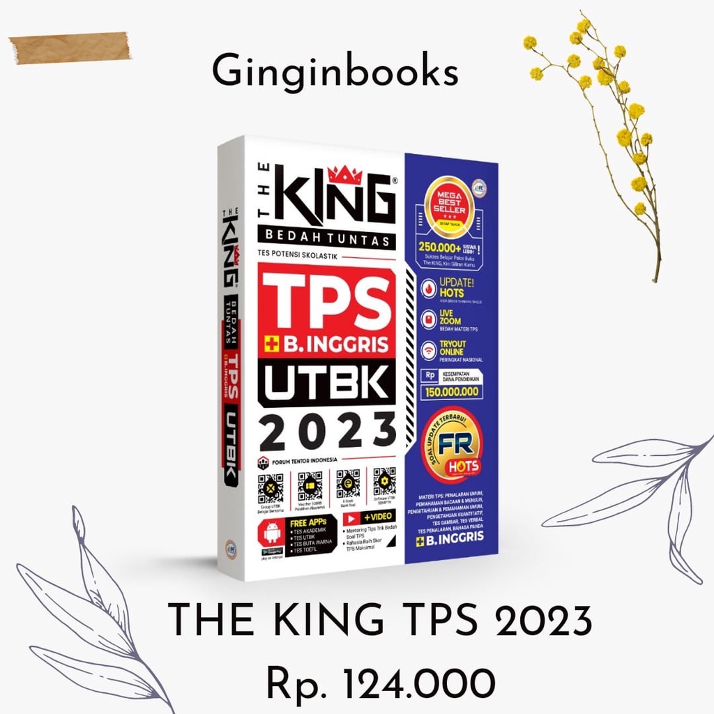 Produk BEST SELLER THE KING BEDAH SOAL MATERI TPS + BAHASA INGGRIS 2023 ini harganya adalah Rp. 124.000,00 dan saat ini sedang Diskon 20%, Produk ini sendiri saat saya tulis Artikel ini sudah dilihat sebanyak kali dan sudah disukai sebanyak 69 kali.