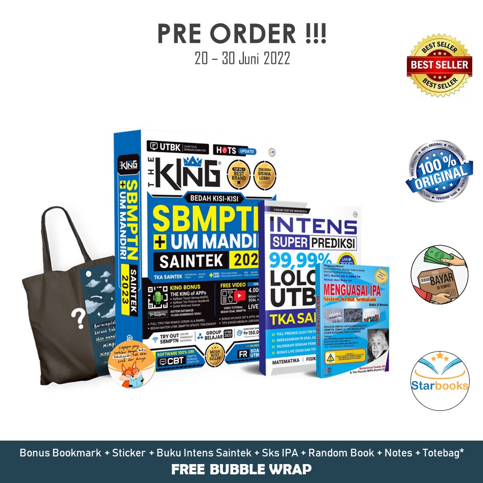 Produk PRE ORDER!!! BUKU THE KING BEDAH KISI2 SBMPTN SAINTEK 2023 +NOTES - FE ini harganya adalah Rp. 37.000,00 dan saat ini sedang Diskon 67%, Produk ini sendiri saat saya tulis Artikel ini sudah dilihat sebanyak kali dan sudah disukai sebanyak 1529 kali.